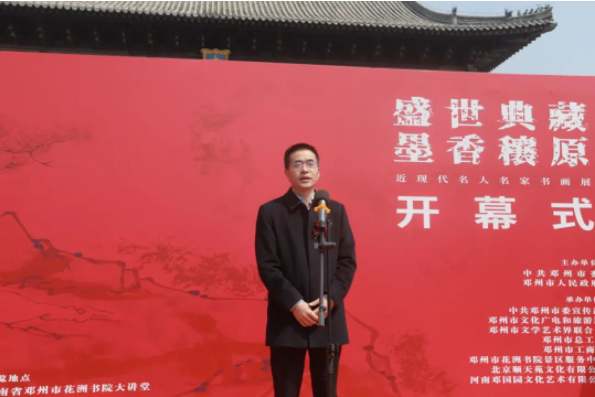 為全面學(xué)習貫徹黨的二十大精神,弘揚傳承中華優(yōu)秀傳統(tǒng)文化,進一步繁榮鄧州文藝事業(yè),以優(yōu)秀的作品豐富群眾文化生活,3月30日,“盛世典藏墨香穰原”中國近現(xiàn)代名人名家書畫展在河南省鄧州市花洲書院開幕。來自北京藝術(shù)界代表,南陽市文聯(lián)、美協(xié)、書協(xié)代表,鄧州市相關(guān)文化部門負責人及鄧州市廣大書畫愛好者參加了開幕式。