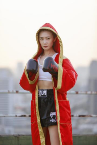 于是我在想如果是參加比賽的話,那么就有可能會(huì)遇到在全球范圍之內(nèi)能跟我有同樣量級(jí)的職業(yè)拳擊手。果不其然,這一次去泰國(guó)比賽就遇到了Siritorn,她也是108磅量級(jí)的職業(yè)拳擊手,從小訓(xùn)練泰拳,所以經(jīng)由這我就開啟了自己的職業(yè)比賽之路。我覺得拳擊比賽對(duì)我來講就是一次拳擊的集中檢驗(yàn),7年訓(xùn)練的結(jié)果,將在這一次的比賽當(dāng)中完成一次考試。