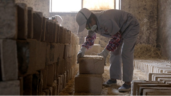 如今,經(jīng)過一代代四特制曲人的努力,《天工開物》里的制曲工藝得以傳承與發(fā)展,形成了自成一派的特香型大曲酒工藝:以面粉、麥麩、酒糟按一定比例混拌、壓制成型,而后經(jīng)過長霉、晾霉、潮火、大火、后火五個(gè)培曲階段以及三次人工翻曲,最終入庫貯存3-6個(gè)月,形成特殊的曲香味。