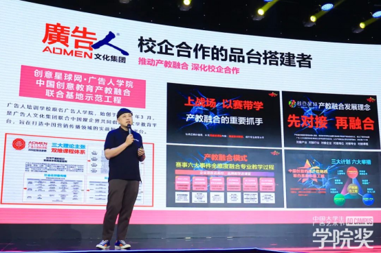 創(chuàng)意星球董事、副總經理李春生先生題為《做校企合作的提燈人和馬車夫》的演講。李春生先生詳細說明廣告人文化集團的歷程、內容生態(tài)圈與平臺戰(zhàn)略布局,表示:“廣告人文化集團發(fā)展至今,積累了深厚的社會資源。作為熱愛教育事業(yè)的追夢人,在各高校紛紛積極探索實踐教學、教育改革之路時,廣告人文化集團決心盡自己所能幫助高校在實踐教學的道路上走得更快?!?br />
