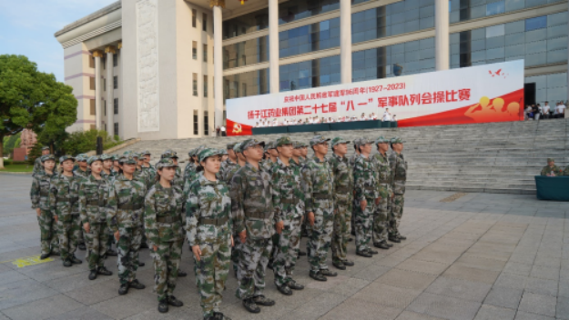 軍旗飄揚(yáng),軍號嘹亮。為慶祝中國人民解放軍建軍96周年,8月1日下午,揚(yáng)子江藥業(yè)集團(tuán)第二十七屆“八一”軍事隊(duì)列會操比賽在泰州總部舉行。泰州市委常委、軍分區(qū)司令員廖鵬,市退役軍人事務(wù)局局長張兆洋,高港區(qū)人武部部長朱平平出席活動,揚(yáng)子江藥業(yè)集團(tuán)黨委書記、董事長、總經(jīng)理徐浩宇現(xiàn)場觀摩會操比賽并講話。
