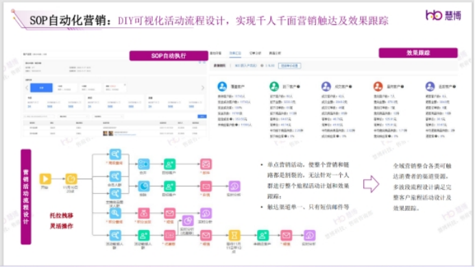 例如,基于慧博云千載MA(營銷畫布),通過DIY可視化活動流程設(shè)計,實現(xiàn)千人千面營銷觸達(dá)及效果跟蹤。
