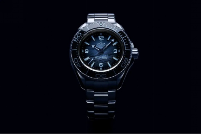 這次歐米茄海馬75周年紀念款的表盤,雖然每一款的質(zhì)感都不同,卻都采用了漸變藍色的暈染效果,歐米茄稱之為“Summer Blue”。但是根據(jù)每個款式所能承載的下潛深度不同,表盤采用的藍色色調(diào)也不同,基本上對應照光層,弱光層,深海層,深淵層的不同深度下海水呈現(xiàn)的效果。比如6000米已經(jīng)到了海底的深淵層,這個深度是需要探照燈照明的,那海洋宇宙Ultra Deep 6000M專業(yè)潛水表表盤的藍也就更加深邃,幾乎接近黑色。