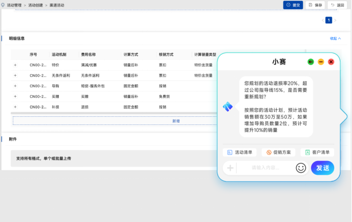 賽博威新一代多元營銷費用管理,是TPM也不止是TPM,通過靈活配置,滿足企業(yè)營銷數(shù)字化全鏈路個性化需求。應(yīng)用最新AI技術(shù)應(yīng)用,減少手工報表,讓人機溝通更順暢,讓業(yè)務(wù)人員輕松、快速、準確地獲取所需信息。
