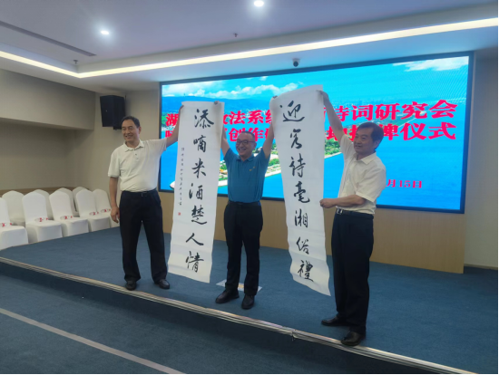 詩以言志,文以化人。以法護(hù)商,以商促文。7月15日上午,坐落于長沙市芙蓉區(qū)“中央文化區(qū)”的嘀嘀大廈五樓會議室高朋滿座,熱鬧非凡?!昂鲜≌ㄎ幕粥执髲B創(chuàng)研基地”簽約暨掛牌儀式在此隆重舉行。省政法系統(tǒng)書畫詩詞研究會主席團(tuán)成員彭對喜,副會長劉慶富;詩詞分會主席陳嶺及副主席賀曦、周加良、江世炎;書法分會主席陳祥松、副主席吳若順;長沙法官文聯(lián)副主席胡軍軍等領(lǐng)導(dǎo)和嘉賓出席活動。