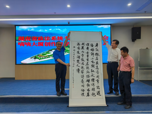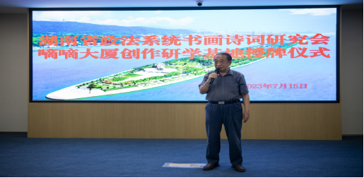 “全面建設(shè)社會主義現(xiàn)代化國家,必須堅(jiān)持中國特色社會主義文化發(fā)展道路,增強(qiáng)文化自信。文化是民族之根。應(yīng)該讀好‘兩本書’,一本是有字的經(jīng)典之書,一本是無字的實(shí)踐之書。嘀嘀大廈緊鄰長沙火車站,來往交通方便,文化氣息濃厚,在長沙法官文聯(lián)學(xué)雷鋒書畫工作站的基礎(chǔ)上,進(jìn)一步成立政法文化創(chuàng)作研學(xué)基地,開展各種有意義的詩詞書畫文藝活動,可以助力實(shí)現(xiàn)‘以文興商、以商促文’的雙贏目的,為建設(shè)社會主義文化強(qiáng)國貢獻(xiàn)出我們應(yīng)有的心智和力量。這樣的政法文化創(chuàng)作研學(xué)基地多多益善?!迸韺ο矊顒咏o予高度肯定。