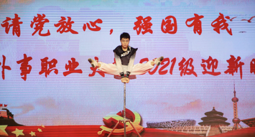 在孫彤宇副校長(zhǎng)演講之前,晚會(huì)呈現(xiàn)了精彩紛呈的多個(gè)節(jié)目。晚會(huì)在合唱《大魚(yú)》《明天你好》優(yōu)美的歌聲中拉開(kāi)帷幕,演唱者為五年一貫制2021級(jí)新生合唱團(tuán),深情的演唱、優(yōu)美的旋律引起了現(xiàn)場(chǎng)觀(guān)眾共鳴。配樂(lè)詩(shī)朗誦《請(qǐng)黨放心 強(qiáng)國(guó)有我》讓人們看到祖國(guó)新一代對(duì)實(shí)現(xiàn)強(qiáng)國(guó)夢(mèng)的信心。由我??罩谐藙?wù)專(zhuān)業(yè)學(xué)生帶來(lái)的《空乘禮儀展示》在活力四射的音樂(lè)中上演,俊男靚女著裝整齊,儀態(tài)大方,展示空乘學(xué)子的青春風(fēng)采。來(lái)自山東藝術(shù)學(xué)院的青年歌唱家李章棟傾情演唱《燈火里的中國(guó)》,旋律悠揚(yáng)、緊扣時(shí)代,展現(xiàn)了燈火里的繁花似錦和安詳寧?kù)o、奮發(fā)圖強(qiáng)和生生不息。