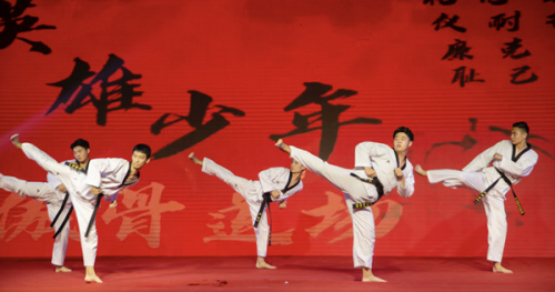 《跆拳舞道》結(jié)合了跆拳道動(dòng)作精髓和現(xiàn)代舞蹈風(fēng)格,讓大家耳目一新。歌舞《超級(jí)冠軍》《忽然之間》獲得了觀(guān)眾們的陣陣喝彩。我校青年教師郭玉夢(mèng)、陳帥對(duì)唱的《祖國(guó)萬(wàn)歲》,唱出了對(duì)國(guó)家大好河山的贊美和對(duì)祖國(guó)的美好祝福。由我校藝術(shù)學(xué)院院長(zhǎng)劉絮和山東省京劇院青年老生演員崔敬強(qiáng)共同演唱的《中國(guó)脊梁》作為壓軸登場(chǎng),用戲曲唱法抒發(fā)了對(duì)國(guó)家和民族的自豪情感。最后,全體演員一一上臺(tái)向所有觀(guān)眾致敬,晚會(huì)在觀(guān)眾的陣陣熱烈掌聲中落下帷幕。