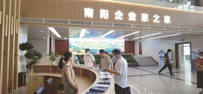 近日,調(diào)研組走進(jìn)南陽(yáng)市企業(yè)服務(wù)中心。這座毗鄰南陽(yáng)行政審批服務(wù)中心的建筑物恢弘大氣、設(shè)施完備、環(huán)境溫馨。南陽(yáng)市企業(yè)服務(wù)中心建筑面積1.2萬(wàn)平方米,是中部地區(qū)最大的企業(yè)服務(wù)實(shí)體大廳。該中心以“全賦能、心服務(wù)”為核心理念,設(shè)訴求響應(yīng)、中介服務(wù)、企業(yè)家素質(zhì)提升和精品展示四大功能區(qū),通過(guò)“一網(wǎng)六部一講堂”為主架構(gòu)的線上線下聯(lián)動(dòng)機(jī)制,為企業(yè)提供全生命周期呵護(hù)、全鏈條體系支持、全需求要素保障、全方位素質(zhì)提升、全市場(chǎng)主體覆蓋、全流程精準(zhǔn)服務(wù)的六全一站式服務(wù)。