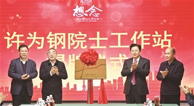 南陽(yáng)市委書(shū)記朱是西(右二)為許為鋼院士工作站揭牌