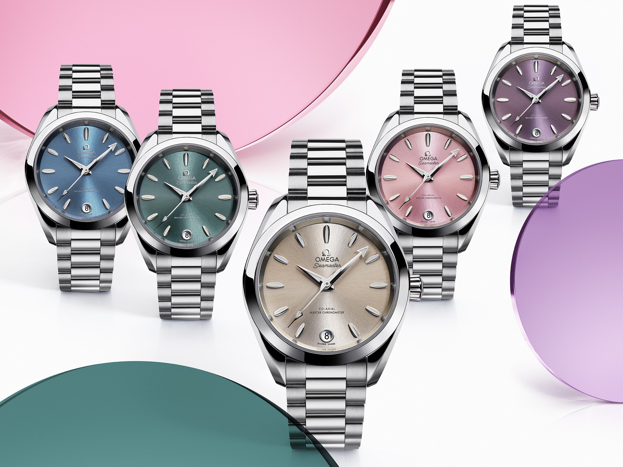 對(duì)于表迷來說,此次新出的 Aqua Terra Shades 腕表有34毫米和38毫米兩種尺寸可供選擇,對(duì)應(yīng)了男女的不同需求。最為引人矚目的還是靈感來自海洋和陸地的彩色表盤,如38毫米表款的盤面有深藍(lán)色、月桂綠色、砂巖色、橘黃色和赤陶色;34毫米表款則有海藍(lán)色、湖綠色、砂巖色、貝殼粉色和薰衣草紫色表盤可選,不同的色彩表現(xiàn)出佩戴著不同的個(gè)性與風(fēng)格。